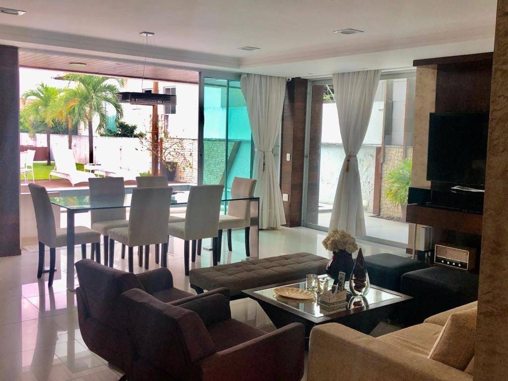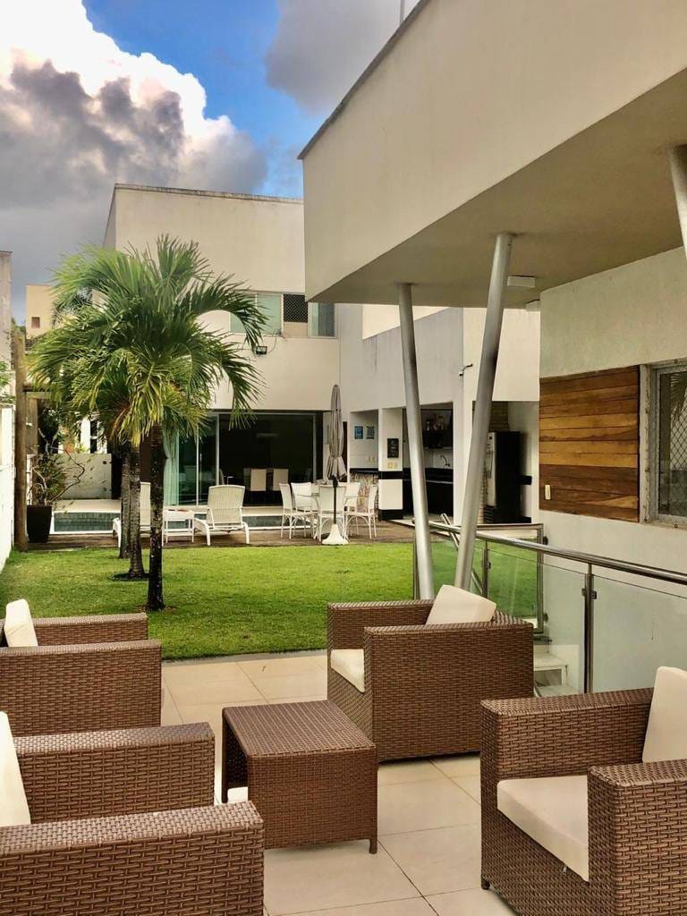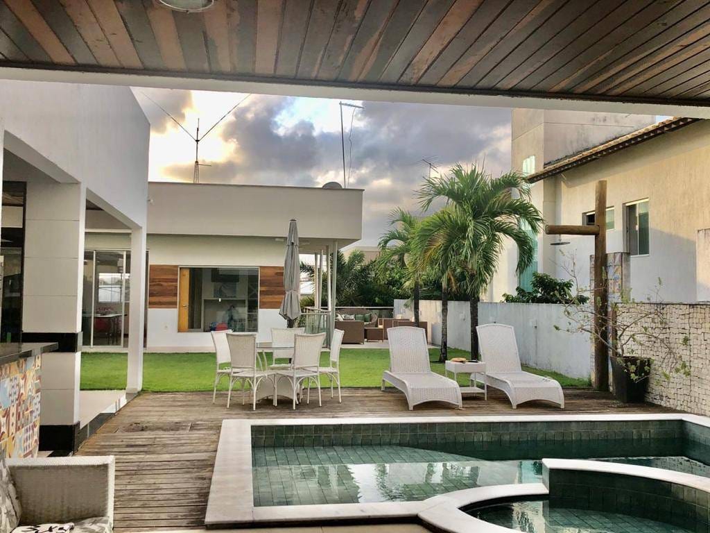 🌴 Casa Duplex de Alto Padrão no Condomínio Bosque das Palmeiras | 4 Suítes Master e Lazer ExclusivoLocalização: Condomínio Bosque das Palmeiras, Alameda dos Bosques, Parque do Jiqui, Parnamirim/RN.Área Construída: 420 m | Terreno: 600 m Dormitórios: 4 (Sendo 2 Suítes Master) | Vagas: 6 🌟 Destaque as Características ÚnicasDescubra o privilégio de viver em uma casa duplex contemporânea de 420 metros no prestigiado Condomínio Bosque das Palmeiras. Esta residência é um refúgio de luxo e privacidade, com uma fachada moderna que combina tons claros e revestimentos em pedra, e um projeto que prioriza o bem-estar e o convívio social.Seu diferencial é o lazer privativo completo em um terreno de $600 \, \text{m}^2$: a integração perfeita entre a área gourmet, o lounge coberto (pergolado) e o jardim exuberante com piscina, ideal para o clima tropical de Natal. O acabamento de alto padrão, visível nos ambientes internos e externos, garante que você se mude para uma casa impecável. 🏡 Detalhes Internos: Sofisticação e ConfortoOs espaços internos foram pensados para o máximo conforto e elegância. O piso em porcelanato claro e a iluminação embutida valorizam a ampla Sala de Estar e Jantar, com área de bar e adega, perfeita para receber. O imóvel conta ainda com uma Sala de TV reservada e um prático Home Office com armários planejados (conforme foto), ideal para quem precisa de produtividade sem sair de casa.No pavimento superior, a exclusividade das 4 suítes, sendo 2 Suítes Master com espaço diferenciado. Um dos grandes atrativos é a Sala de Jogos com Wc privativo, um ambiente versátil que pode ser adaptado para um quinto quarto, academia ou sala de cinema. A Cozinha é funcional e conta com uma ampla despensa, garantindo organização para o seu dia a dia.Armários planejados nos quartos, banheiros e escritório (visíveis nas fotos).Decoração e revestimentos de primeira linha. ☀️ Ambientes Externos e Lazer PrivativoA área externa é o coração desta casa: um verdadeiro clube exclusivo para sua família. O Espaço Gourmet é coberto por um charmoso madeiramento e equipado com churrasqueira e forno de pizza, convidando a momentos gastronômicos inesquecíveis.Ao lado, a Piscina Adulto e Infantil com deck e solário é um convite para refrescantes banhos de sol. O projeto paisagístico inclui um gramado bem cuidado e palmeiras, criando um ambiente de resort (conforme fotos). Para a criançada, há uma brinquedoteca adjacente, garantindo diversão e segurança. O imóvel ainda dispõe de Dependência Completa com WC e uma espaçosa área de serviço. 🔌 Conexão e TecnologiaPensando em sustentabilidade e economia, a casa possui Aquecimento Solar de água, proporcionando conforto térmico e redução de custos. Conta com sistemas de climatização (Ar Condicionado Split na sala), portão eletrônico e garagem coberta para até 6 carros, um diferencial importantíssimo na região. 🛡️ Segurança e Comodidade do CondomínioO Bosque das Palmeiras é sinônimo de segurança e lazer. A infraestrutura do condomínio oferece Portaria 24 horas e sistema de vigilância para a tranquilidade total da sua família.Lazer Completo do Condomínio (Informações da pesquisa):Piscina com raias e Piscina Aquecida.Quadras de Tênis, Quadra Poliesportiva e Quadra de Squash.Salão de Festas, Salão Gourmet e Salão de Jogos.Academia equipada e Sauna.Playground e Brinquedoteca. 📍 Localização Estratégica: Parque do JiquiO condomínio está localizado na Alameda dos Bosques, no bairro Parque do Jiqui, em Parnamirim/RN. Esta é uma região em franca valorização, conhecida por abrigar os principais condomínios de alto padrão da Grande Natal.A localização oferece facilidade e conveniência de uma área arborizada e segura, mas com acesso rápido a tudo que você precisa:Próximo à Avenida Ayrton Senna e BR-101.Em poucos minutos você acessa escolas de excelência, supermercados (Maxi, Nordestão), Shoppings Centers (Shopping Ayrton Senna), farmácias, padarias e diversos serviços.Transporte: Facilidade de acesso às principais vias que ligam a Zona Sul de Natal e Parnamirim, otimizando seu tempo no trânsito.