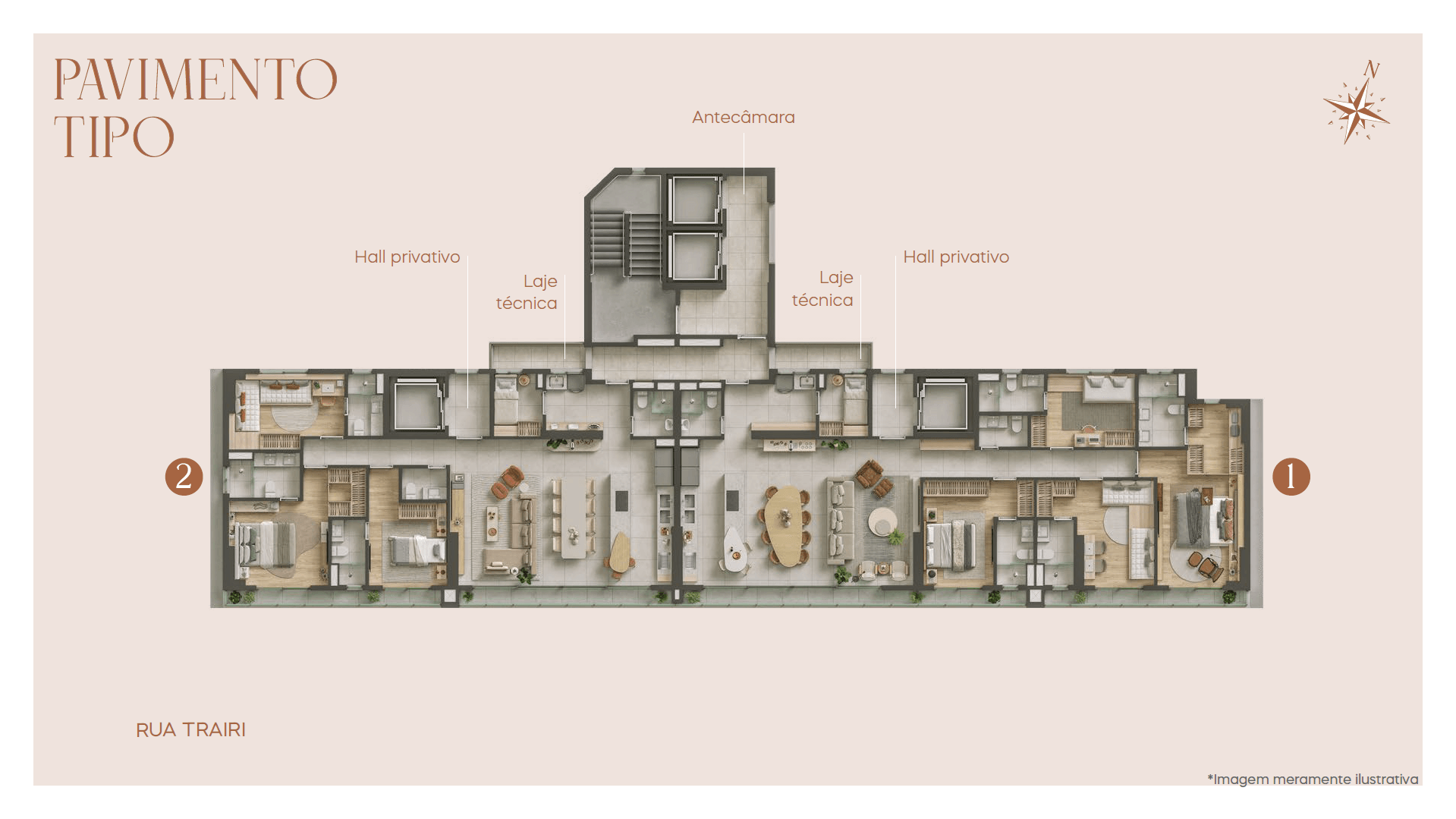 O Trairi 517 está localizado no melhor de Petrópolis e oferece apartamentos de 3 ou 4 suítes. Beleza, sofisticação e imponência em uma das melhores localizações de Natal, próximo à Praça Cívica. Projetado para você vivenciar, respirar e se inspirar. Localizado em um dos melhores trechos do bairro de Petrópolis, próximo de comércio e serviços diversos. O Trairi 517 é composto por 37 pavimentos. 2 apartamentos por pavimento, sendo: -- Apartamentos 3 suítes: 140 metros quadrados, com 2 vagas de garagem. -- Apartamentos 4 suítes: 176 metros quadrados, com 3 vagas de garagem. PAVIMENTO TÉRREO Acesso de pedestres Porte-cochère Recepção Conveniência Portaria Cascata Pet place Playground Passeio Interno Deck piscina Piscina, prainha e minispa com hidro Piscina infantil Miniquadra Terraço gourmet Área gourmet Brinquedoteca Jogos PAVIMENTO MEZANINO Academia Salão de festas Hall social Antecâmara DIFERENCIAIS Carregamento para carro elétrico Fechaduras eletrônicas nas portas de entrada social dos apartamentos Áreas comuns entregues mobiliadas e equipadas Uma tomada e um ponto de luz de emergência por unidade de apartamento Controle de acesso de pedestres e veículos automatizado Academia com equipamentos profissionais Loja de conveniência Infraestrutura para WIFI nas áreas comuns Hall privativo nos pavimentos tipo Piscina aquecida com hidromassagem Infraestrutura para câmeras de segurança SUSTENTABILIDADE Elevadores com regeneração de energia Irrigação automatizada Iluminação em led nas áreas comuns Paisagismo com uso preferencial de espécies nativas Placas solares para atender parte da área comum